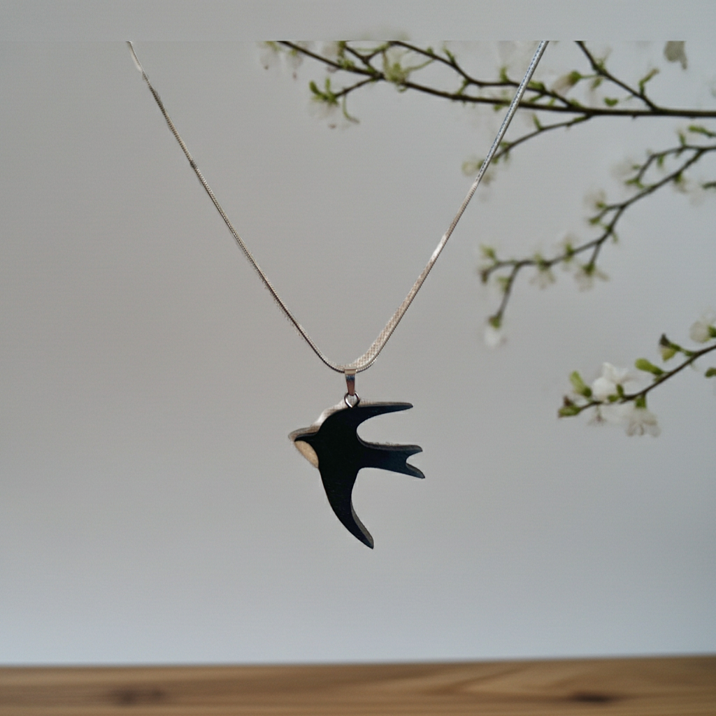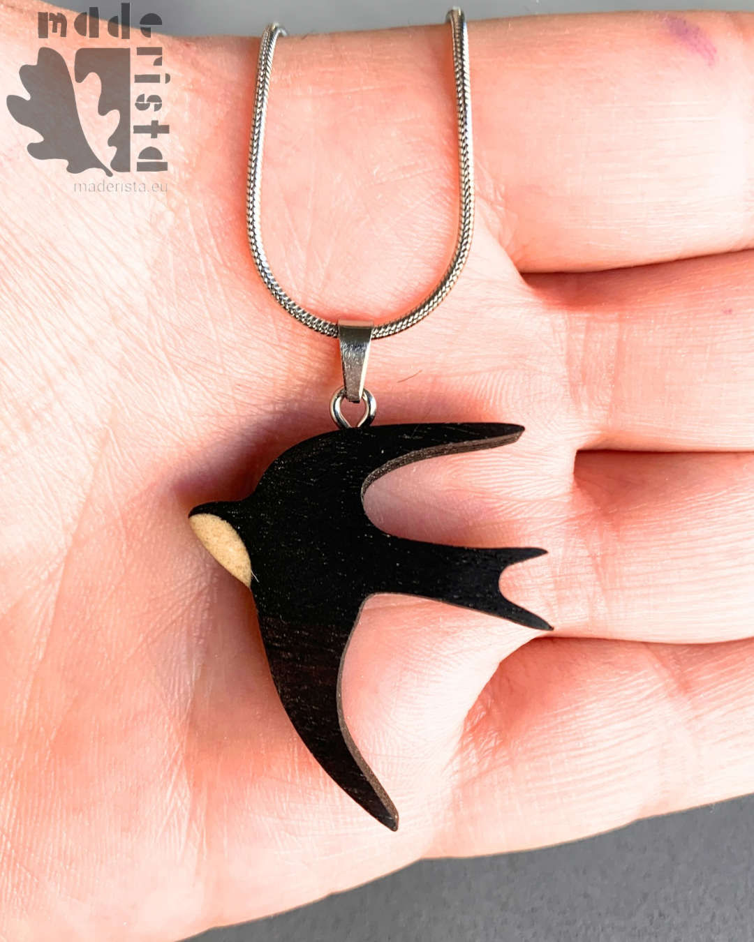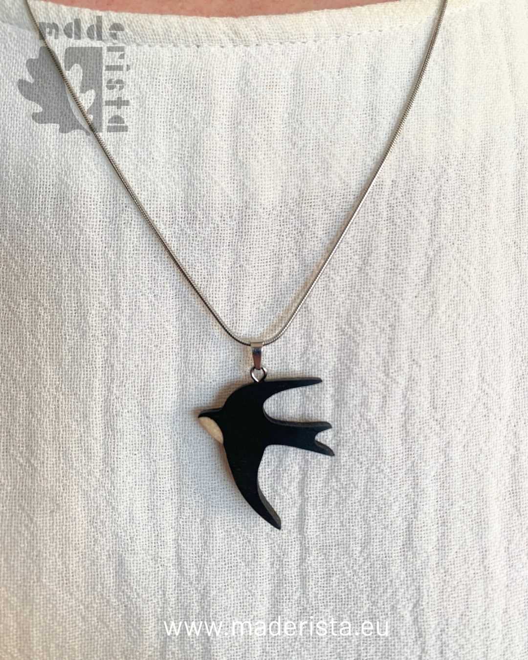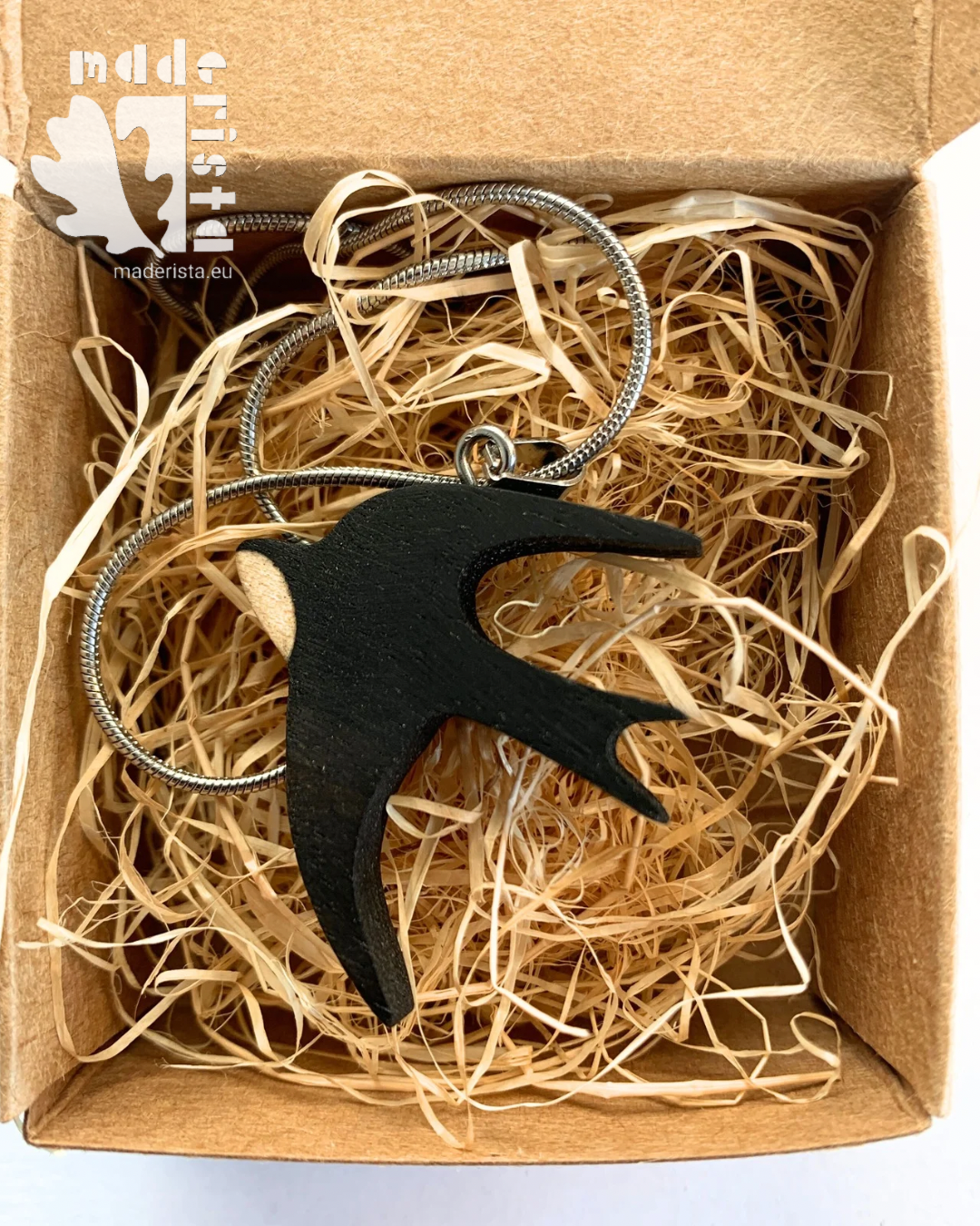 🕊️ Colgante artesanal de golondrina – Ébano y arce